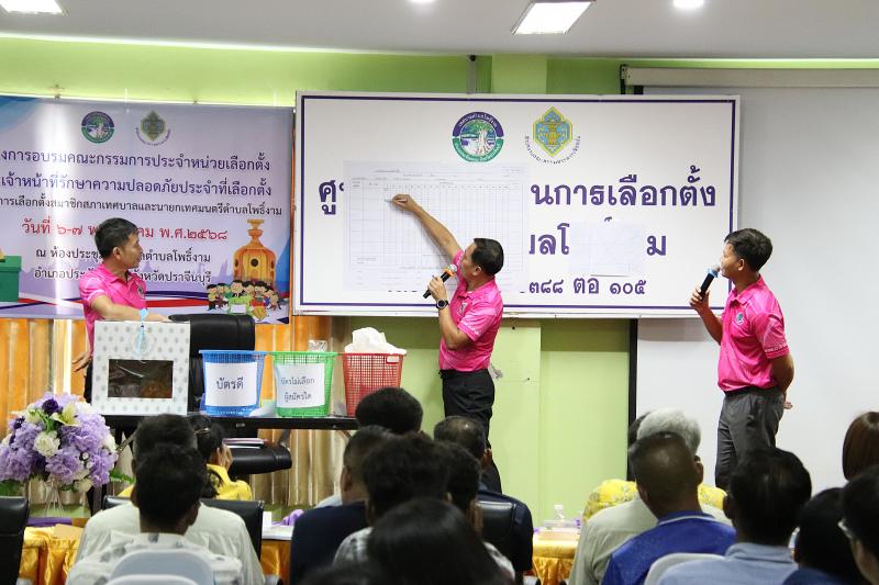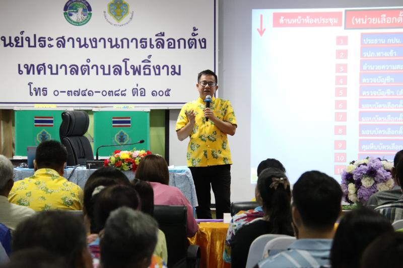 รายละเอียด : วันที่ 7 พฤษภาคม 2567 เวลา 09.00 น. เทศบาลตำบลโพธิ์งาม จัดโครงการอบรมคณะกรรมการประจำหน่วยเลือกตั้งและเจ้าหน้าที่รักษาความปลอดภัยประจำที่เลือกตั้ง สำหรับการเลือกตั้งสมาชิกสภาเทศบาลและนายกเทศมนตรีตำบลโพธิ์งาม ณ ห้องประชุมเทศบาลตำบลโพธิ์งาม ได้รับเกียรติจาก นายกองตรี ปพนศักดิ์ ขันติชัยมงคล นายอำเภอประจันตคาม เป็นประธานเปิดโครงการ โดยพันจ่าเอก เรืองชัย รุ่งศิริ ปลัดเทศบาล ปฏิบัติหน้าที่ นายกเทศมนตรีตำบลโพธิ์งาม กล่าวรายงานวัตถุประสงค์ของโครงการฯ ซึ่งนายอำเภอฯได้ให้ข้อเสนอแนะเพิ่มเติมพร้อมกับกำชับการปฏิบัติหน้าที่ ให้สุจริต ถูกต้อง โปร่งใส ของคณะกรรมการประจำหน่วยเลือกตั้งและเจ้าหน้าที่รักษาความปลอดภัยฯ ด้วย