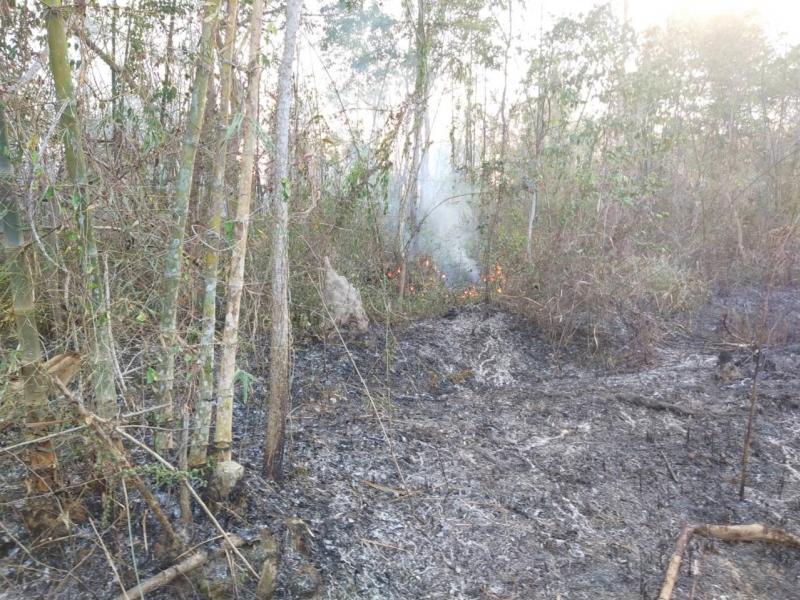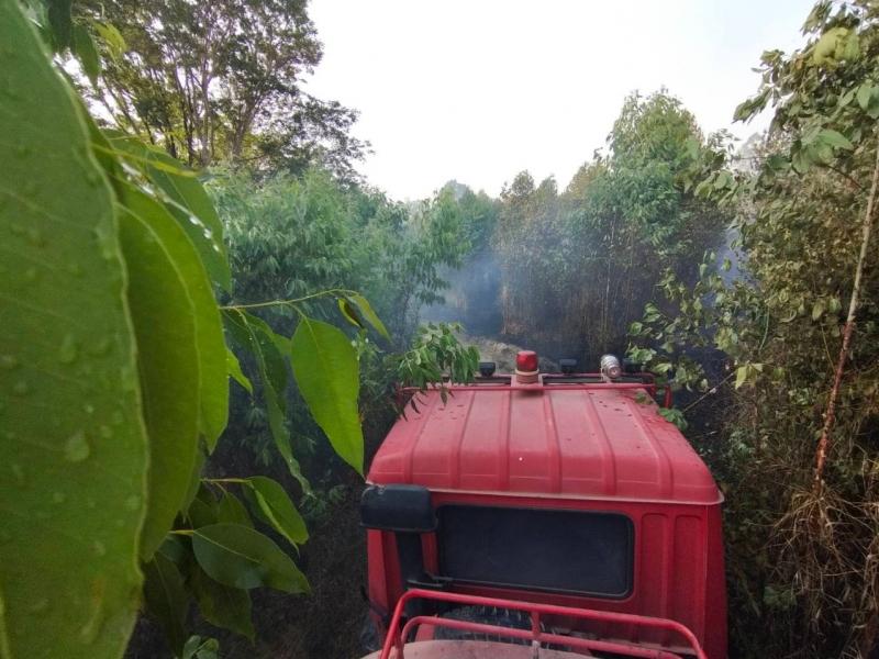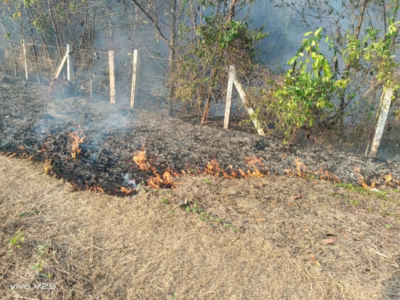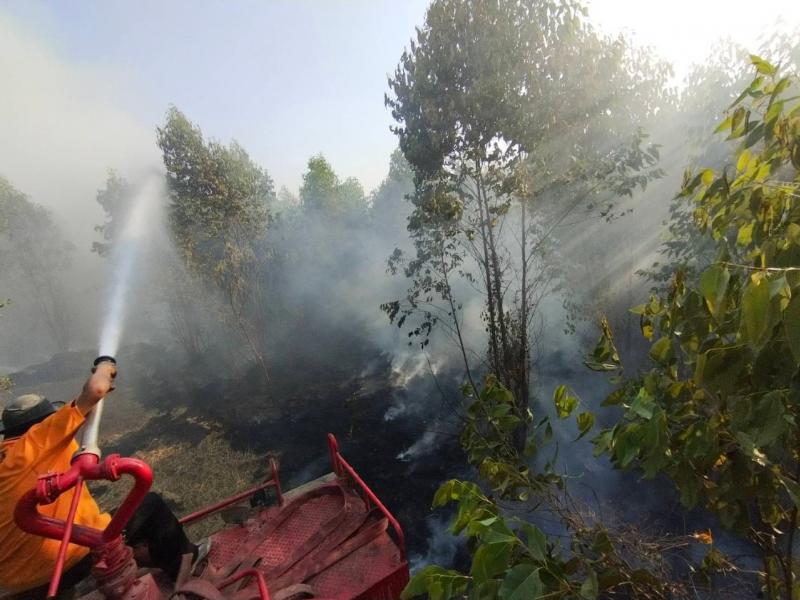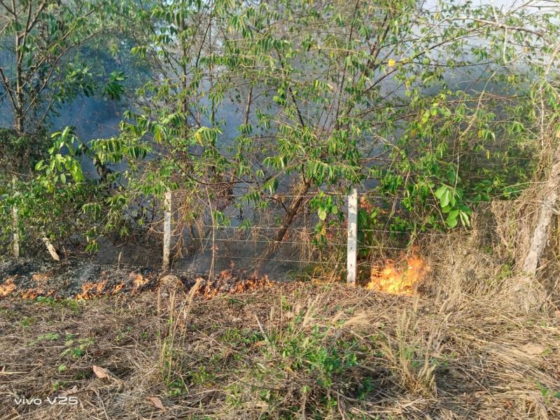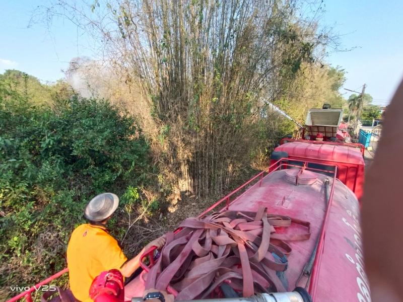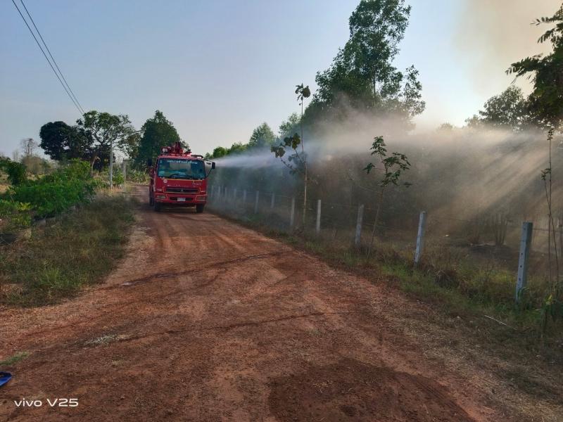 เหตุไฟไหม้หญ้าแห้งลุกลามเข้าป่าไม้ยูคา บริเวณซอยโคกกล่อง พื้นที่หมู่ ๑๙ บ้านม่วงใหม่ ตำบลโพธิ์งาม