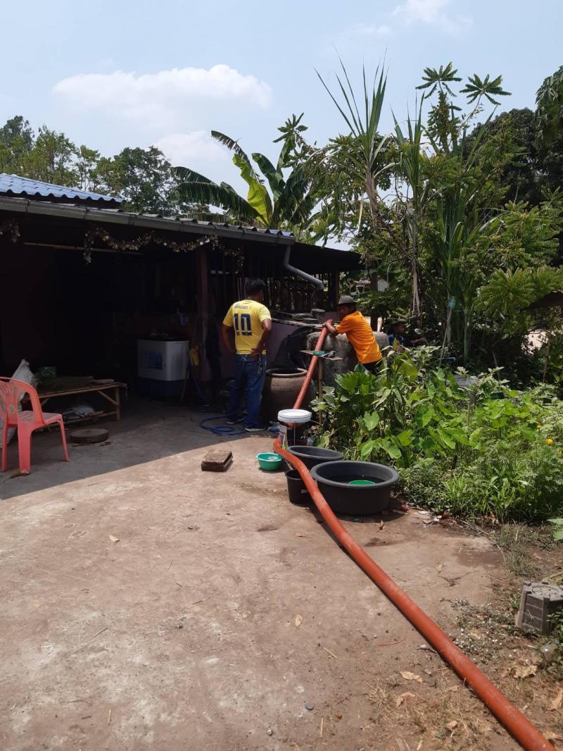 การเป่าล้างท่อประปาหมู่บ้าน หมู่ที่ ๓ บ้านม่วง ตำบลโพธิ์งาม