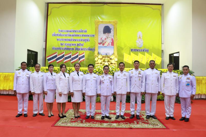 รายละเอียด : วันที่ 28 กรกฎาคม 2568 เวลา 07.00 น. นายเอกชัย เกรียงธนบดี นายกเทศมนตรีตำบลโพธิ์งาม พร้อมด้วยนายจิรสิน ไวงาน รองนายกเทศมนตรีตำบลโพธิ์งาม นำข้าราชการ พนักงาน เจ้าหน้าที่เทศบาลตำบลโพธิ์งาม เข้าร่วมกิจกรรมเฉลิมพระเกียรติเนื่องในโอกาสวันเฉลิมพระชนมพรรษาพระบาทสมเด็จพระเจ้าอยู่หัว ณ หอประชุมอำเภอประจันตคาม โดยนายกองตรี ปพนศักดิ์ ขันติชัยมงคล นายอำเภอประจันตคาม เป็นประธานในพิธี พร้อมด้วยหัวหน้าส่วนราชการ ข้าราชการ หน่วยงานต่างๆในอำเภอประจันคตาม และประชาชน เข้าร่วมกิจกรรมโดยพร้อมเพรียงกัน
