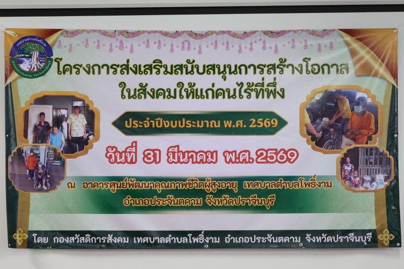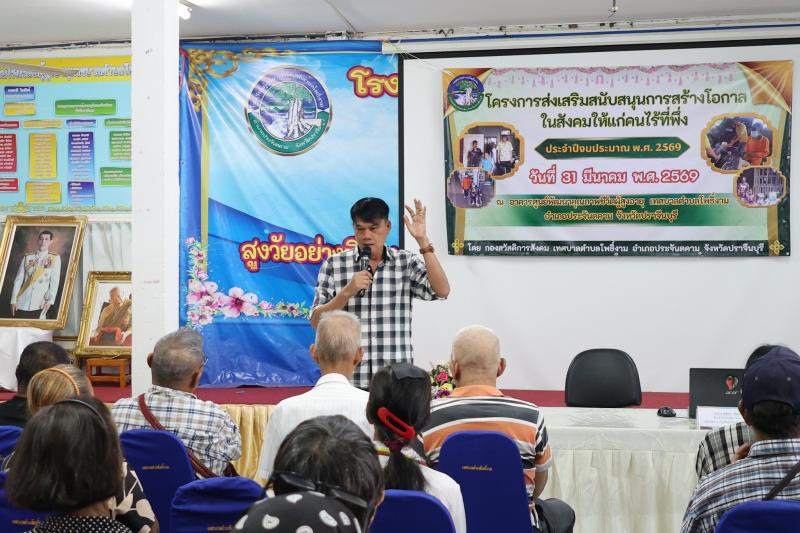 description วันที่ 31 มีนาคม 2569 เวลา 09.00 น. ณ อาคารศูนย์พัฒนาคุณภาพชีวิตผู้อายุเทศบาลตำบลโพธิ์งาม จ่าสิบเอก สุริยา รัตน์วิเศษฤทธิ์ หัวหน้าสำนักปลัด รักษาราชการแทนปลัดเทศบาล ปฏิบัติหน้าที่นายกเทศมนตรีตำบลโพธิ์งาม เป็นประธานเปิดโครงการฯ โดยผู้อำนวยการกองสวัสดิการสังคม เป็นผู้กล่าวรายงานต่อประธานในพิธี พร้อมด้วยหัวหน้าส่วนราชการ พนักงานเทศบาลฯ เข้าร่วมโครงการฯ ในครั้งนี้ด้วย และในโครงการนี้ฯได้รับเกียรติจากศูนย์คุ้มครองและเสริมสร้างคุณภาพชีวิตจังหวัดปราจีนบุรี เป็นวิทยากรให้ความรู้ ด้วย วัตถุประสงค์ : เพื่อให้ครอบครัวผู้มีรายได้น้อย ผู้ประสบปัญหาทางสังคมด้านต่างๆ และคนไร้ที่พึ่งในตำบลโพธิ์งาม สามารถเข้าถึงการจัดสวัสดิการสังคมอย่างเหมาะสม อีกทั้งเป็นการสร้างจิตสำนึกในจึตใจของคนในชุมชนให้เห็นคุณค่าของคนไร้ที่พึ่ง สามารถที่จะใช้ชีวิตในสังคมได้อย่างมีความสุข person admin