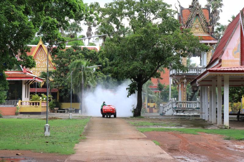 เทศบาลตำบลโพธิ์งาม ฉีดพ่นยาฆ่าเชื้อให้กับพื้นที่ที่คาดว่าจะมีความเสี่ยงเพื่อป้องกันการแพร่ระบาดของโรคติดเชื้อไวรัสโคโรนา ๒๐๑๙ (โควิด-๑๙)