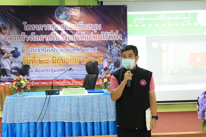 รายละเอียด : วันที่ ๒๘ มิถุนายน ๒๕๖๕ นายบันเทิง ปัญญาดี นายกเทศมนตรีตำบลโพธิ์งาม มอบหมายให้นายพิสัย พานิชดี รองนายกเทศมนตรีตำบลโพธิ์งาม เป็นประธานเปิดโครงการส่งเสริมสนับสนุนการสร้างโอกาสในสังคมให้แก่คนไร้ที่พึ่ง ประจำปีงบประมาณ พ.ศ.๒๕๖๕ ณ ห้องประชุมเทศบาลตำบลโพธิ์งาม โดยมีหัวหน้าส่วนราชการ สมาชิกสภาเทศบาล เข้าร่วมในโครงการฯนี้ด้วย