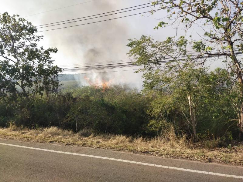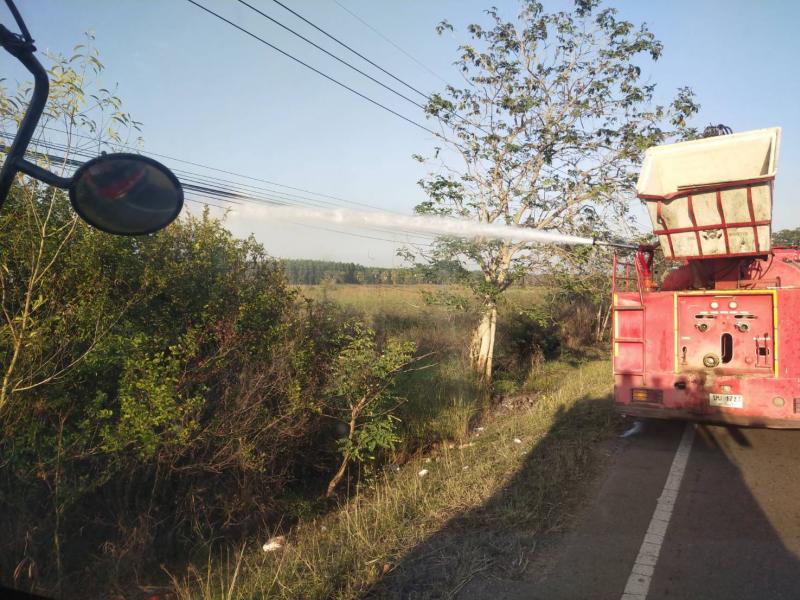 เหตุเพลิงไหม้หญ้าแห้งสองข้างทางฝั่งขาเข้าเมืองปราจีนบุรี เส้นทางแยกห้วยขื่อ-โคกมะกอก บริเวณพื้นที่หมู่ ๑๘ ตำบลโพธิ์งาม