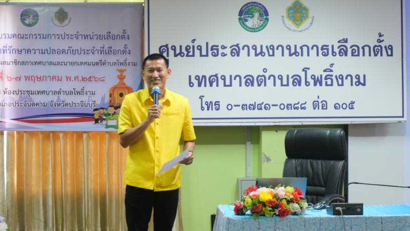 รายละเอียด : วันที่ 6 พฤษภาคม 2567 เวลา 09.00 น. เทศบาลตำบลโพธิ์งาม จัดโครงการอบรมคณะกรรมการประจำหน่วยเลือกตั้งและเจ้าหน้าที่รักษาความปลอดภัยประจำที่เลือกตั้ง สำหรับการเลือกตั้งสมาชิกสภาเทศบาลและนายกเทศมนตรีตำบลโพธิ์งาม ณ ห้องประชุมเทศบาลตำบลโพธิ์งาม โดยพันจ่าเอก เรืองชัย รุ่งศิริ ปลัดเทศบาล ปฏิบัติหน้าที่ นายกเทศมนตรีตำบลโพธิ์งาม กล่าวรายงานวัตถุประสงค์ต่อ นายกองตรี ปพนศักดิ์ ขันติชัยมงคล นายอำเภอประจันตคาม ซึ่งให้เกียรติเป็นประธานเปิดโครงการฯ ในวันนี้