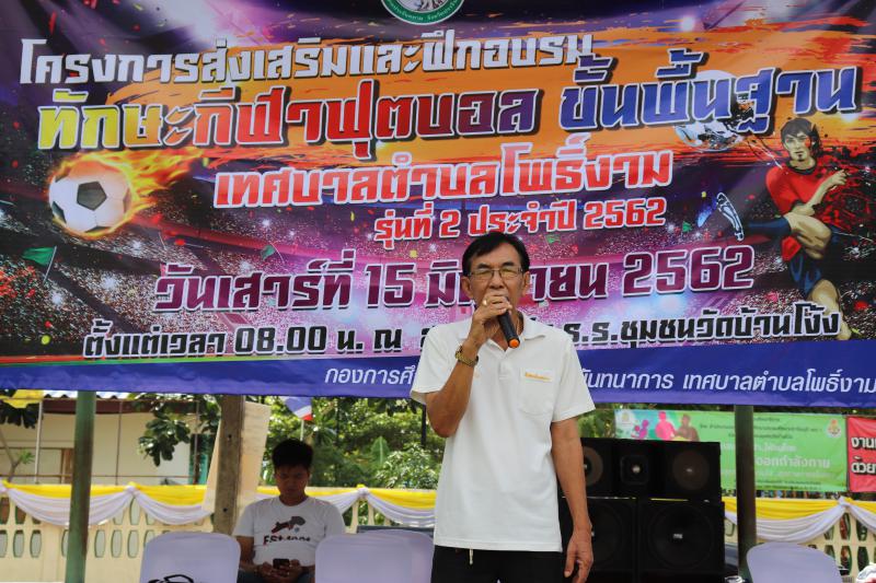วันที่ ๑๕ มิถุนายน ๒๕๖๒ เทศบาลตำบลโพธิ์งาม จัดโครงการส่งเสริมและฝึกฝนอบรมทักษะกีฬาฟุตบอล ขั้นพื้นฐานสำหรับเด็กและเยาวชนเทศบาลตำบลโพธิ์งาม ประจำปีงบประมาณ ๒๕๖๒ ณ สนามกีฬาฟุตบอลโรงเรียนชุมชนวัดบ้านโง้ง โดยนายพิสัย พานิชดี รองนายกเทศมนตรีตำบลโพธิ์งาม เป็นประธานเปิดโครง