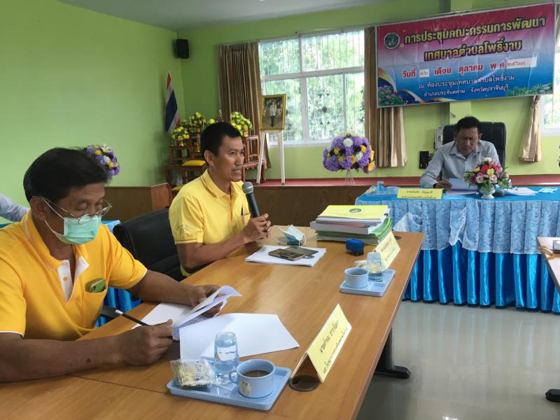รายละเอียด : วันที่ ๑๖ ตุลาคม ๒๕๖๓ เวลา ๐๙.๐๐ น. นายบันเทิง ปัญญาดี นายกเทศมนตรีตำบลโพธิ์งาม เป็นประธานการประชุมคณะกรรมการพัฒนาเทศบาลตำบลโพธิ์งาม เพื่อพิจารณาร่างแผนการดำเนินงาน ประจำปีงบประมาณ พ.ศ.๒๕๖๔