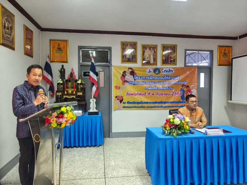 รายละเอียด : วันที่ 4 กันยายน 2568 โครงการฝึกอบรมให้ความรู้การดูแลผู้ป่วยจิตเวชและจิตเวชสารเสพติดในพื้นที่ตำบลโพธิ์งาม ได้รับงบประมาณสนับสนุนจากกองทุนหลักประกันสุขภาพเทศบาลตำบลโพธิ์งาม โดยรับเกียรติจากนายกองตรี ปพนศักดิ์ ขันติชัยมงคล นายอำเภอประจันตคาม เป็นประธานเปิดโครงการฯ ณ ห้องประชุมโีรงพยาบาลส่งเสริมสุขภาพตำบลโพธิ์งาม โดยนายเอกชัย เกรียงธนบดี นายกเทศมนตรีตำบลโพธิ์งาม เป็นผู้กล่าวรายงานวัตถุประสงค์ ของการจัดโครงการฯ ในครั้งนี้