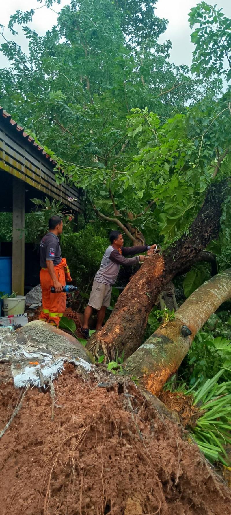 เกิดเหตุวาตภัย ต้นไม้หักโค่นในพื้นที่หมู่ 13 บ้านคลองแก้มช้ำ และหมู่ 17 บ้านยาง