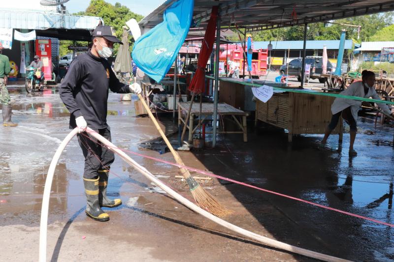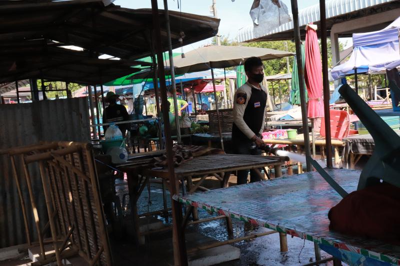 กิจกรรม ทำความสะอาด ฉีดพ่นยาฆ่าเชื้อ ให้กับตลาด ตามมาตรการควบคุมโรคติดเชื้อไวรัส COVID-19