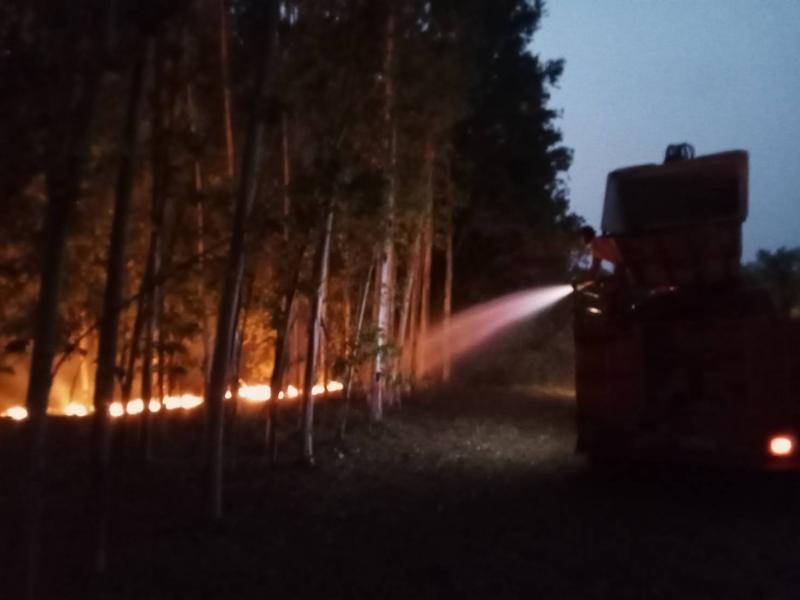 เหตุไฟไหม้ป่าไม้ยูคาบริเวณพื้นที่ หมู่ ๑๘ บ้านไทรงาม และหญ้าแห้งข้างทางแยกห้วยขื่อ ถนน ๓๓ สายใหม่ขาเข้าเมืองปราจีนบุรี