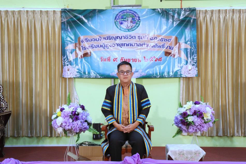 พิธีมอบเกียรติบัตรปริญญาชีวิตแก่นักเรียนโรงเรียนผู้สูงอายุเทศบาลตำบลโพธิ์งาม ประจำปี 2568 [4 กันยายน 2568]
