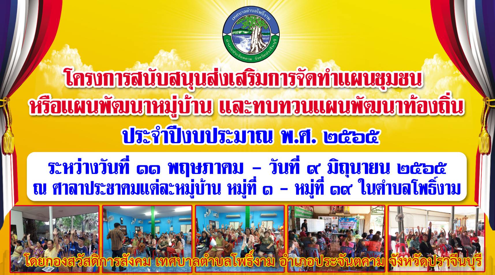 โครงการสนับสนุนส่งเสริมการจัดทำแผนชุมชน/แผนพัฒนาหมู่บ้าน และการจัดทำแผนพัฒนาท้องถิ่น ประจำปีงบประมาณ พ.ศ.๒๕๖๕