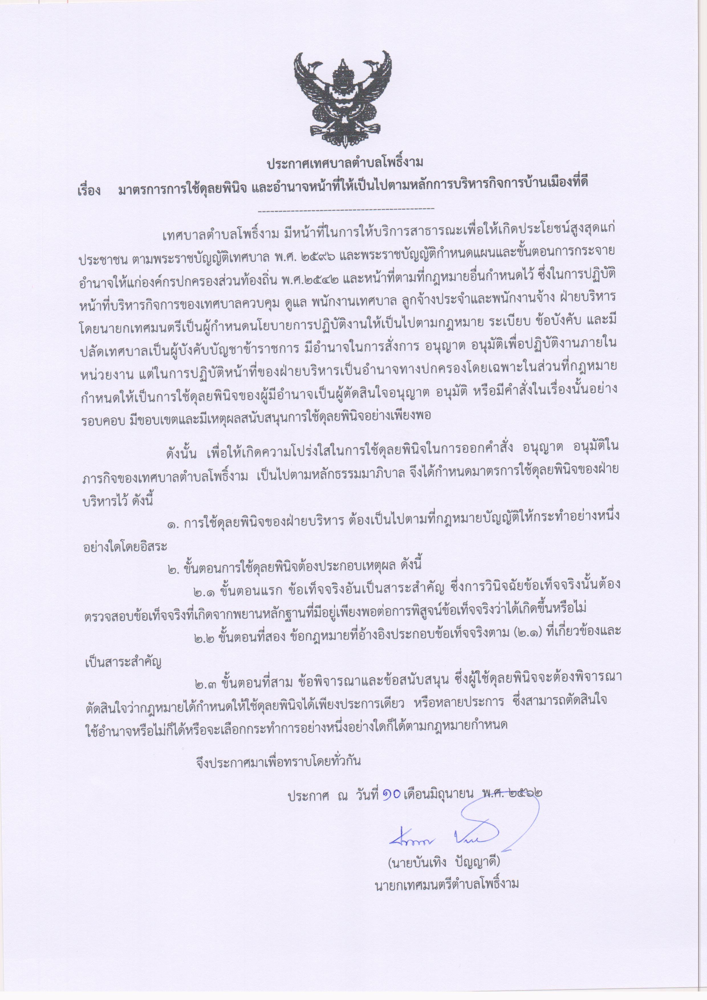 มาตรการการใช้ดุลยพินิจ และอำนาจหน้าที่ให้เป็นไปตามหลักการบริหารกิจการบ้านเมืองที่ดี