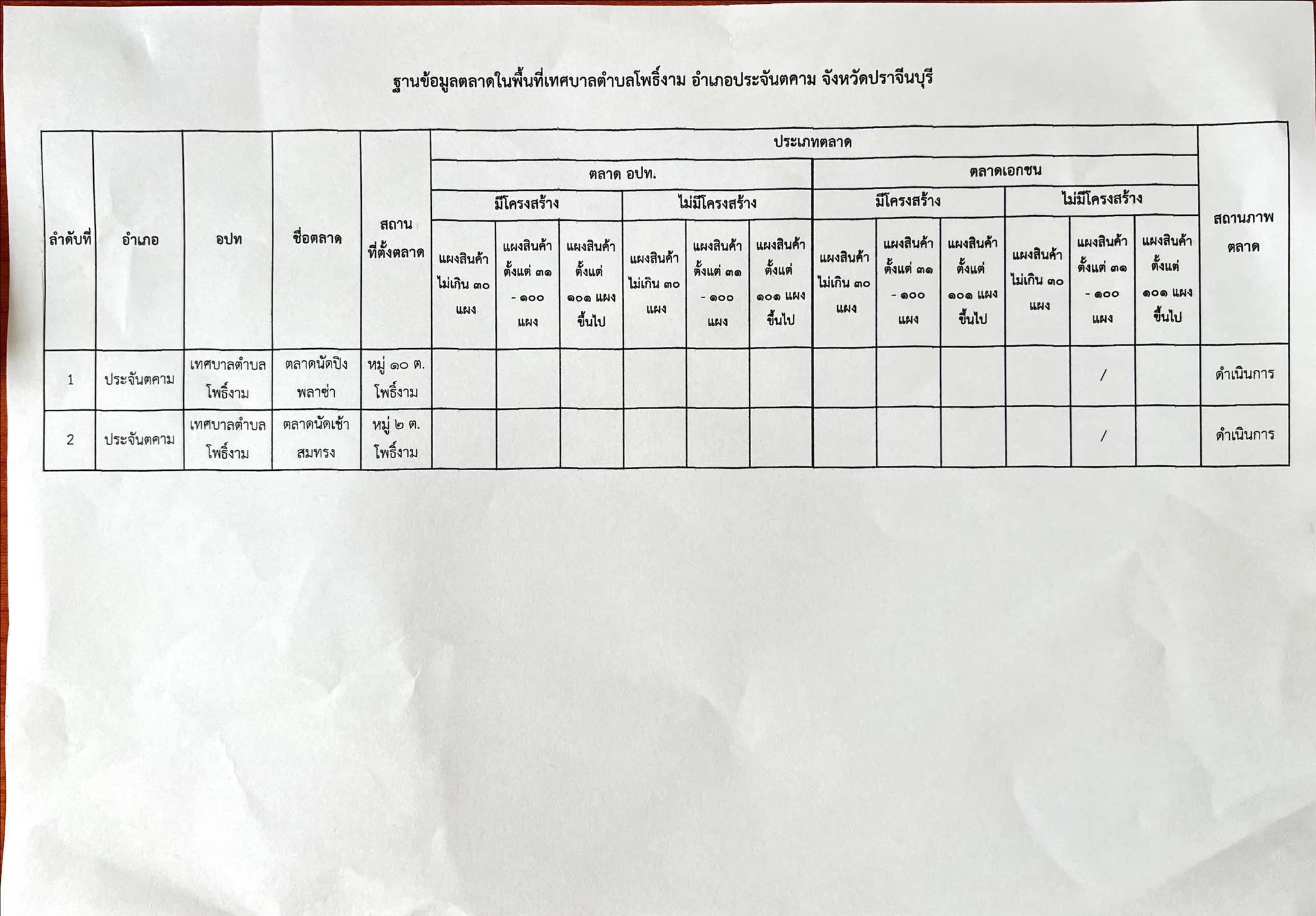 ฐานข้อมูลตลาดในพื้นที่เทศบาลตำบลโพธิ์งาม อำเภอประจันตคาม จังหวัดปราจีนบุรี