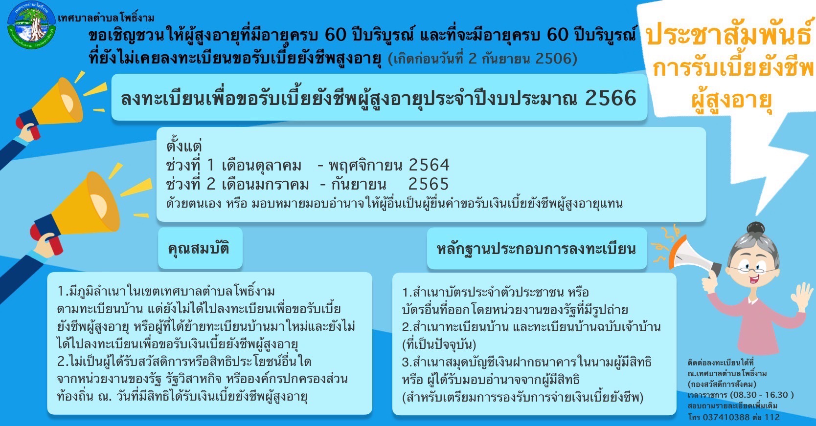 ประชาสัมพันธ์การลงทะเบียนรับเบี้ยยังชีพผู้สูงอายุประจำปี พ.ศ.๒๕๖๖