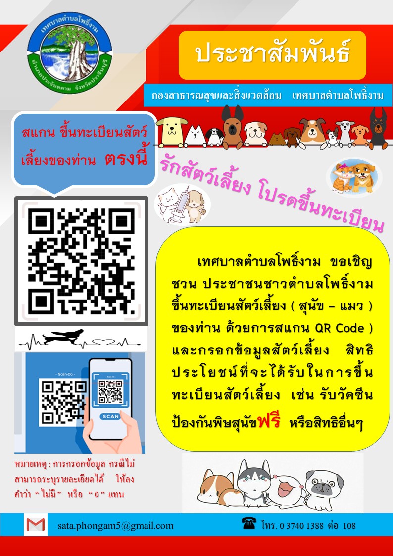 ๒. ประชาสัมพันธ์เชิญชวนสำรวจข้อมูลสัตว์และขึ้นทะเบียนสัตว์ตำบลโพธิ์งาม
