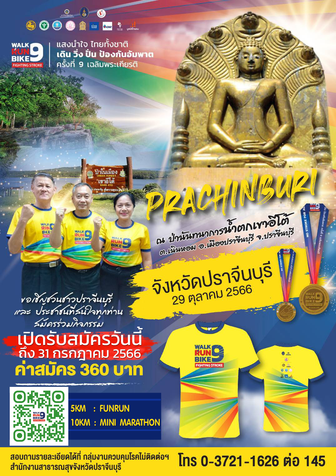 เทศบาลตำบลโพธิ์งาม ขอเชิญชวนทุกท่านสมัครเข้าร่วมกิจกรรม WALK RUN BIKE 9 ((สนาม ปราจีนบุรี))