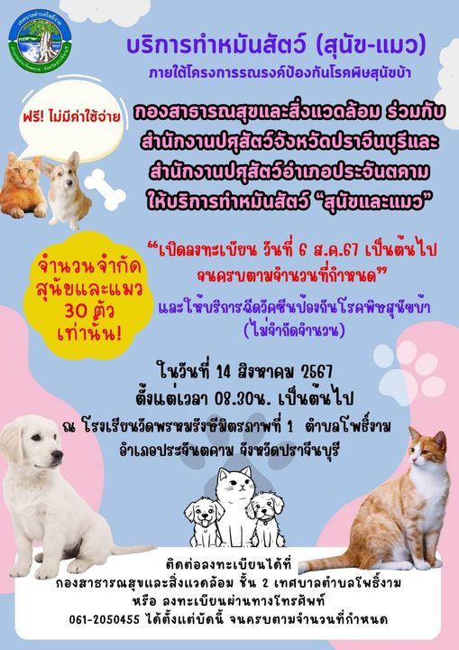 ประชาสัมพันธ์ การลงทะเบียนทำหมันสุนัข-แมว