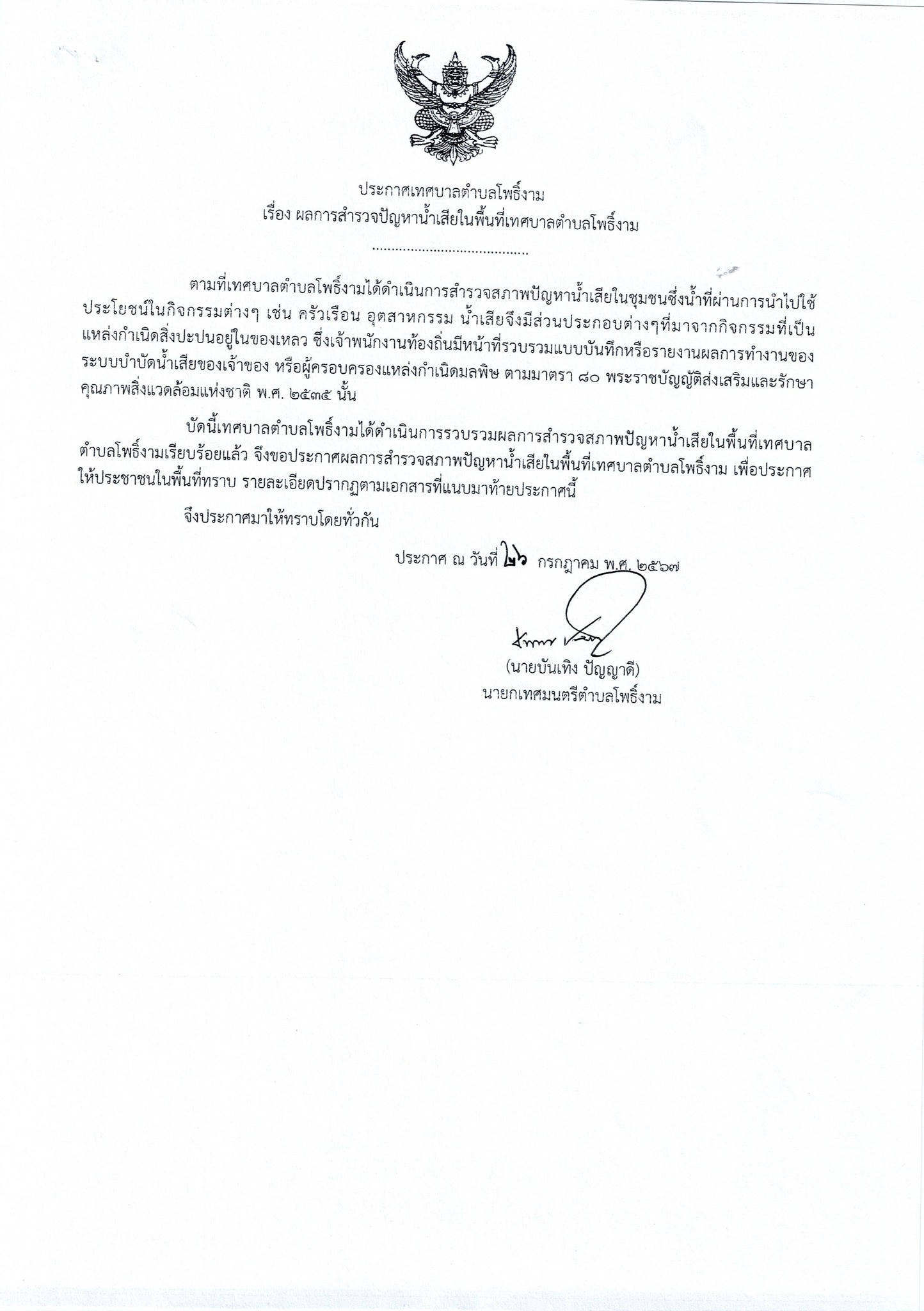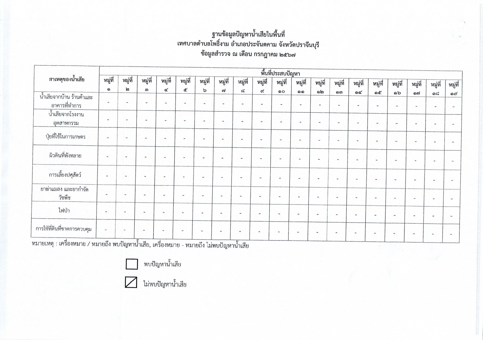 การรายงานผลการสำรวจสภาพปัญหาน้ำเสียในพื้นที่ ประจำปีงบประมาณ พ.ศ. 2567
