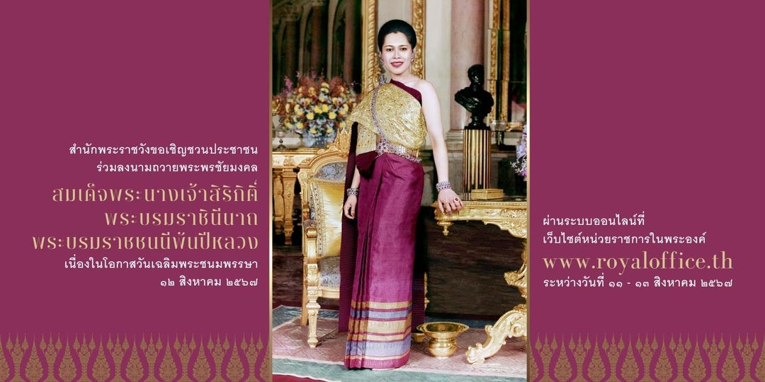สำนักพระราชวัง ขอเชิญชวนประชาชนร่วมลงนามถวายพระพรชัยมงคล สมเด็จพระนางเจ้าสิริกิติ์ พระบรมราชินีนาถ พระบรมราชชนนีพันปีหลวง เนื่องในโอกาสวันเฉลิมพระชนมพ