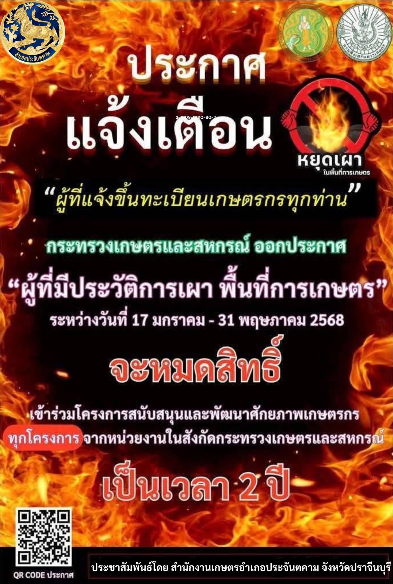 การแจ้งเตือน และขอความร่วมมือห้ามเผาในที่โล่งทุกชนิด