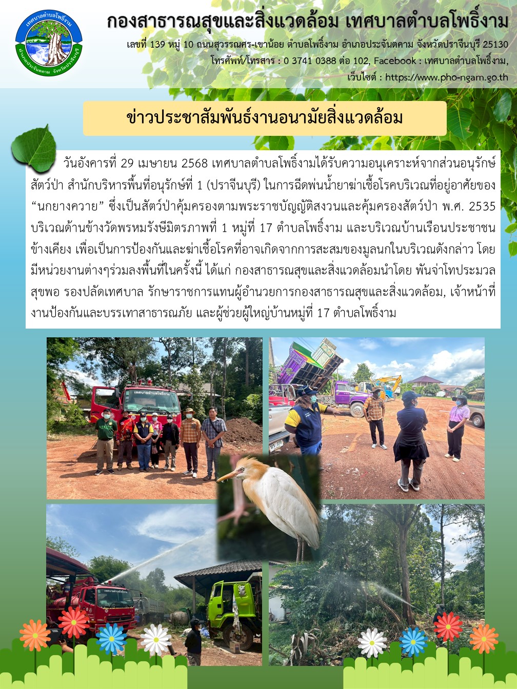 การฉีดพ่นน้ำยาฆ่าเชื้อโรค บรเวณที่มีนกยางควายอาศัยอยู่ ในพื้นที่หมู่ 17 บ้านยาง