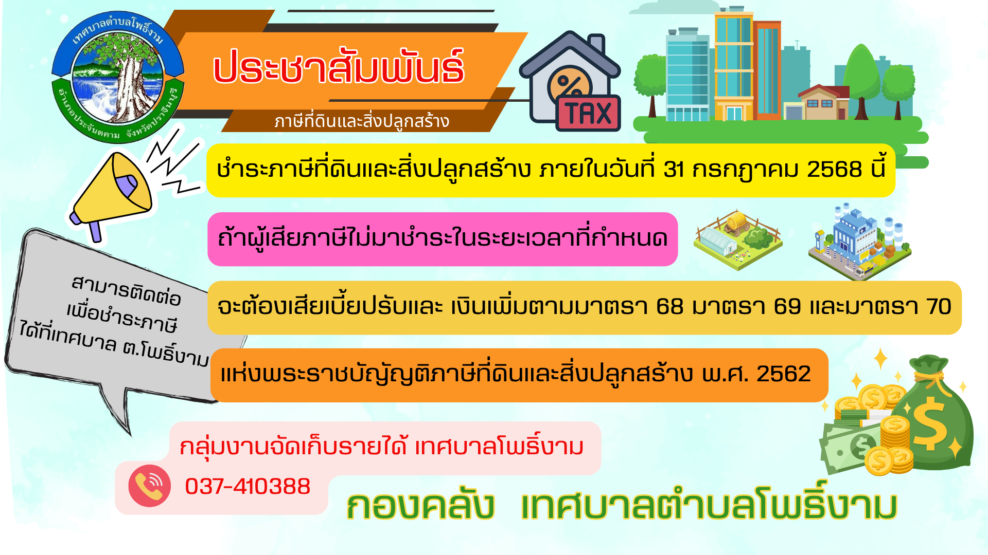 ประชาสัมพันธ์ การชำระภาษีที่ดินและสิ่งปลูกสร้าง