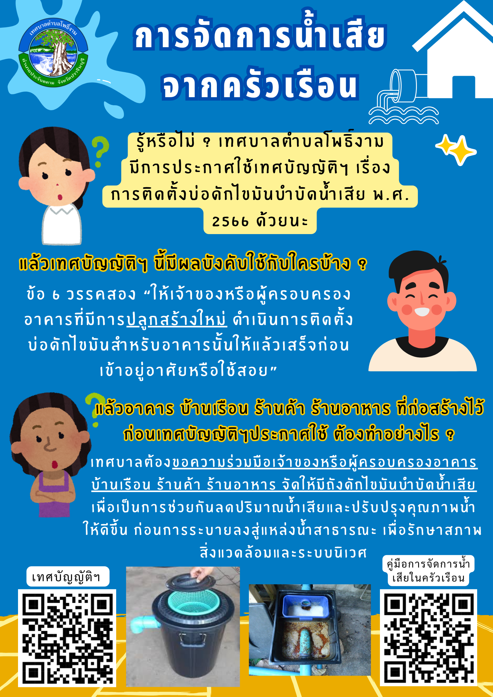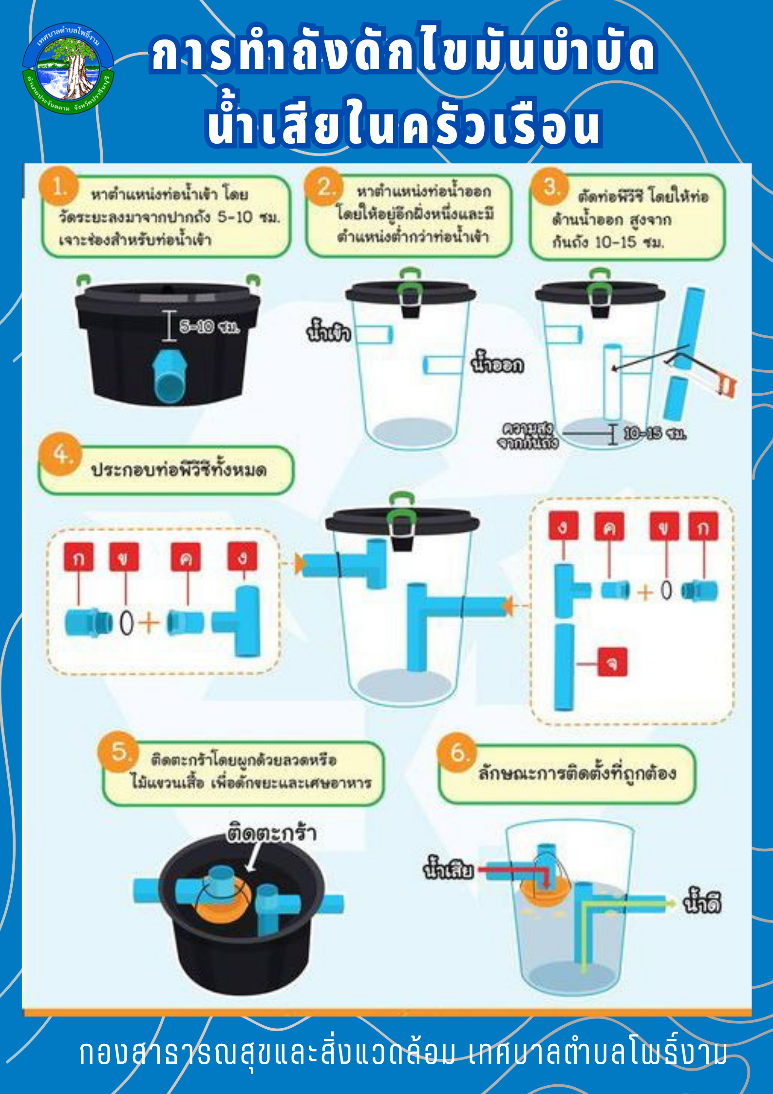 ประชาสัมพันธ์ การทำถังดักไขมันบำบัดน้ำเสียภายในครัวเรือน