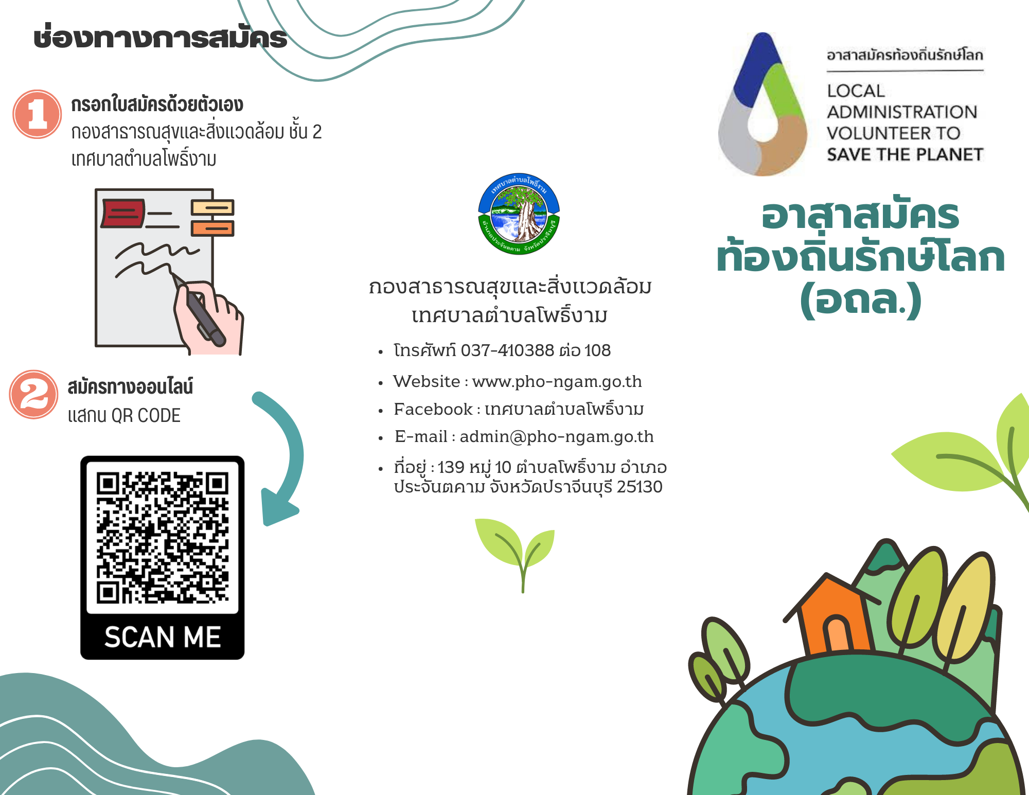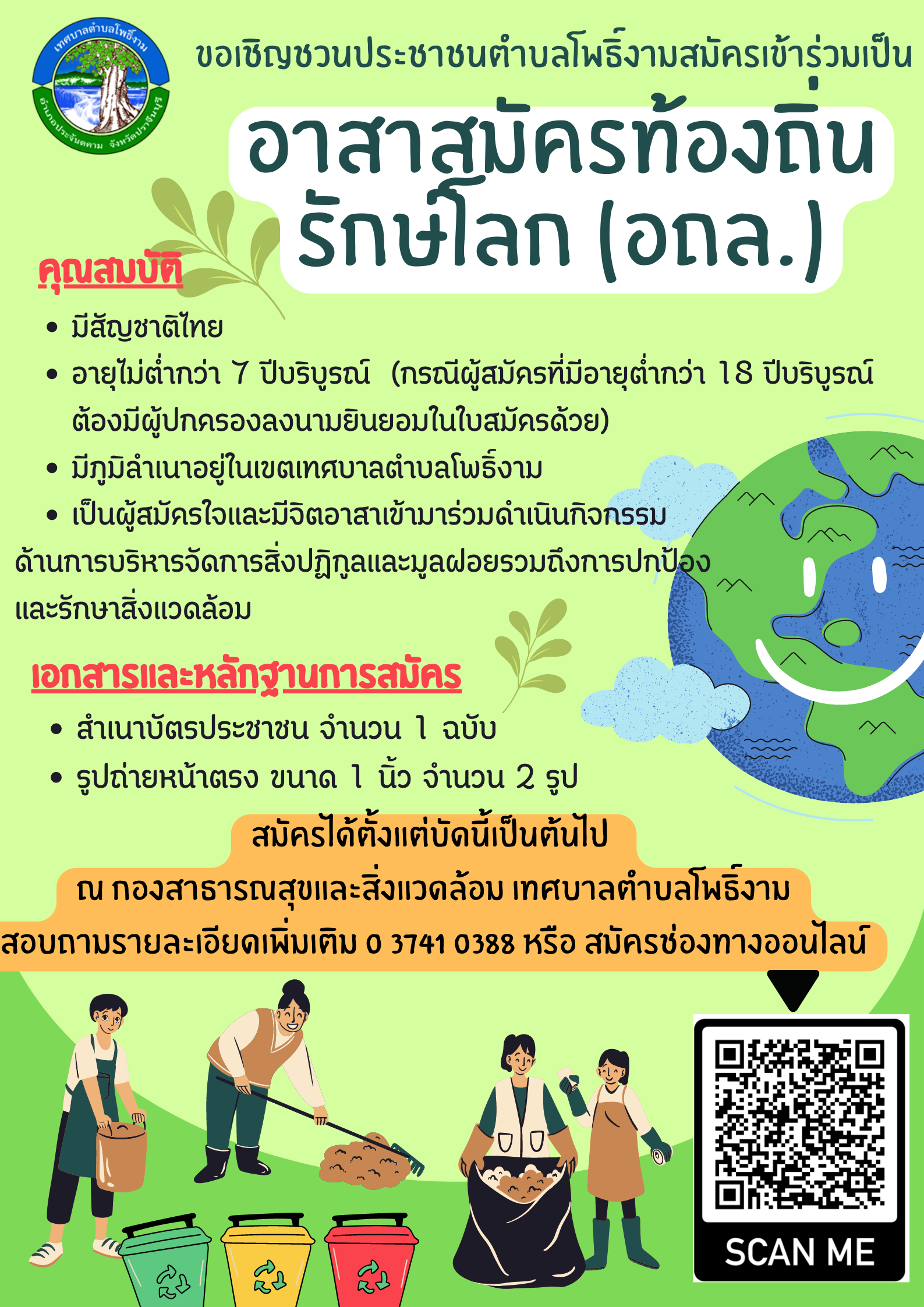 ประกาศเทศบาลตำบลโพธิ์งาม เรื่องการรับสมัครอาสาสมัครท้องถิ่นรักษ์โลก