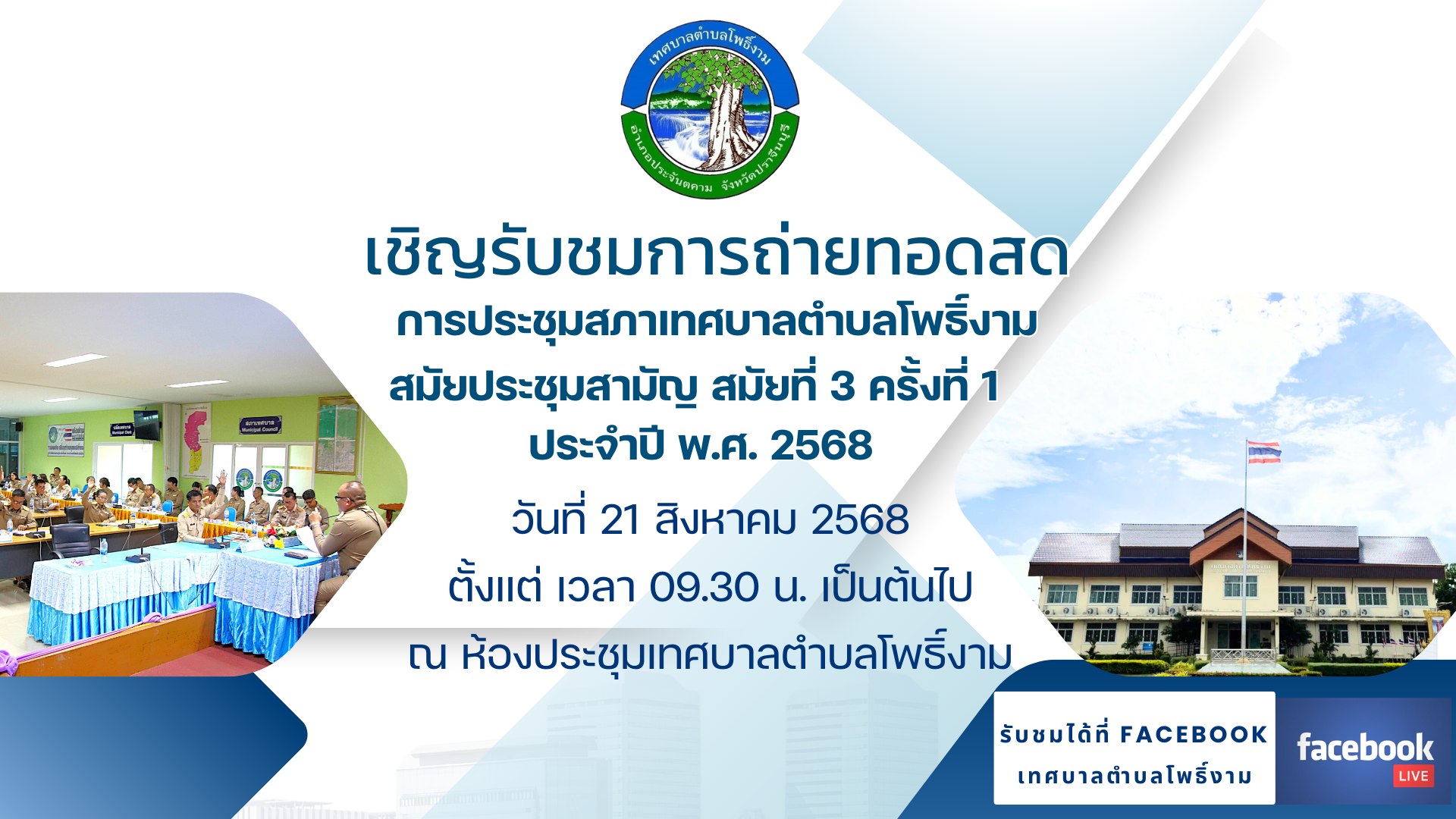 ประชาสัมพันธ์ เชิญชวนรับชมการถ่ายทอดสด การประชุมสภาเทศบาลตำบลโพธิ์งาม สมัยสามัญ สมัยที่ 3 ครั้งที่ 1