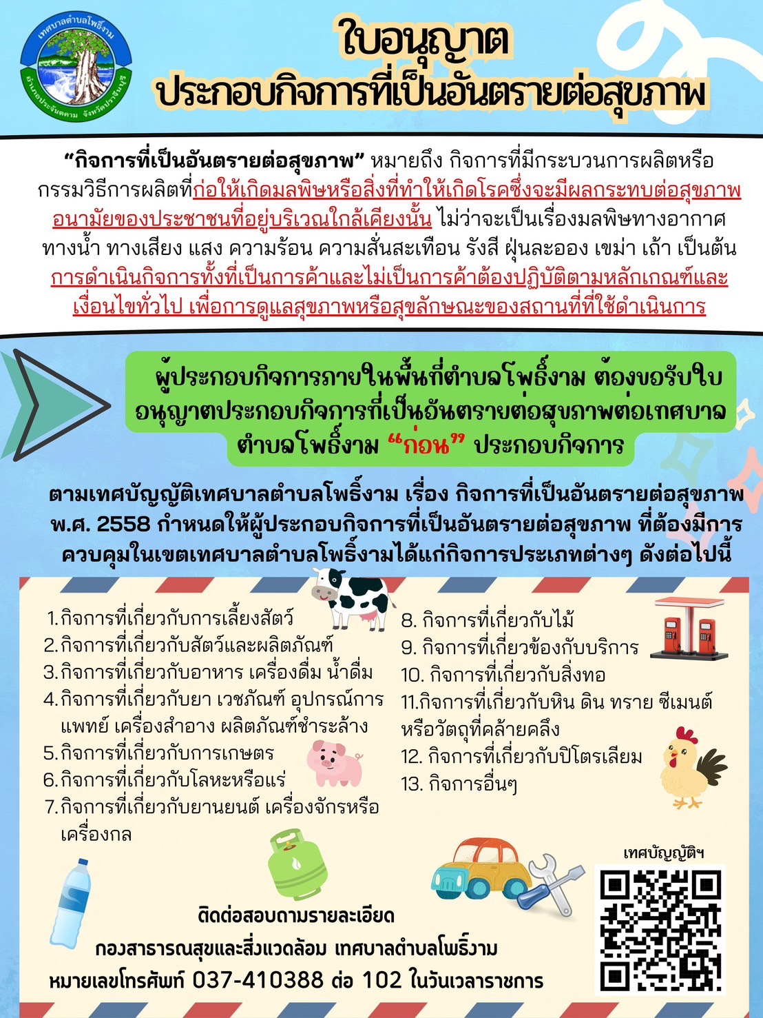 ประชาสัมพันธ์ การขอใบอนุญาตประกอบกิจการที่เป็นอันตรายต่อสุขภาพ
