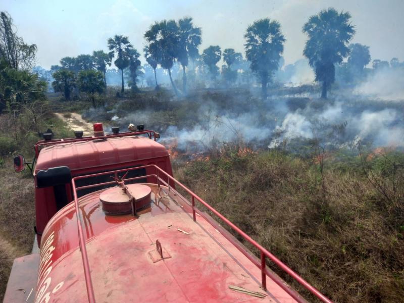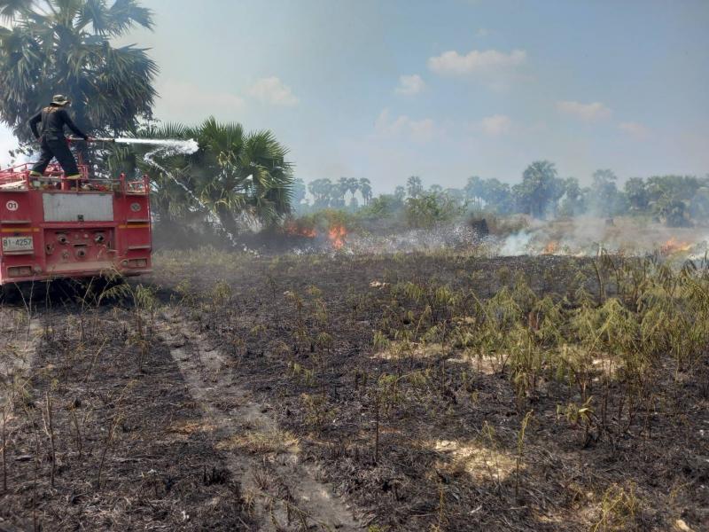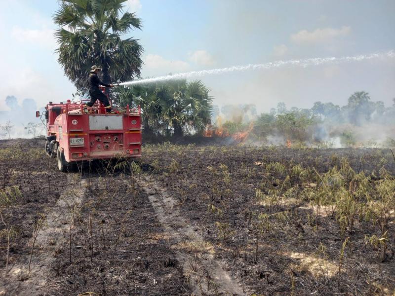 เหตุไฟไหม้ บริเวณหลังศาลตาปู่ พื้นที่หมู่ 12 บ้านโคกบ้าน