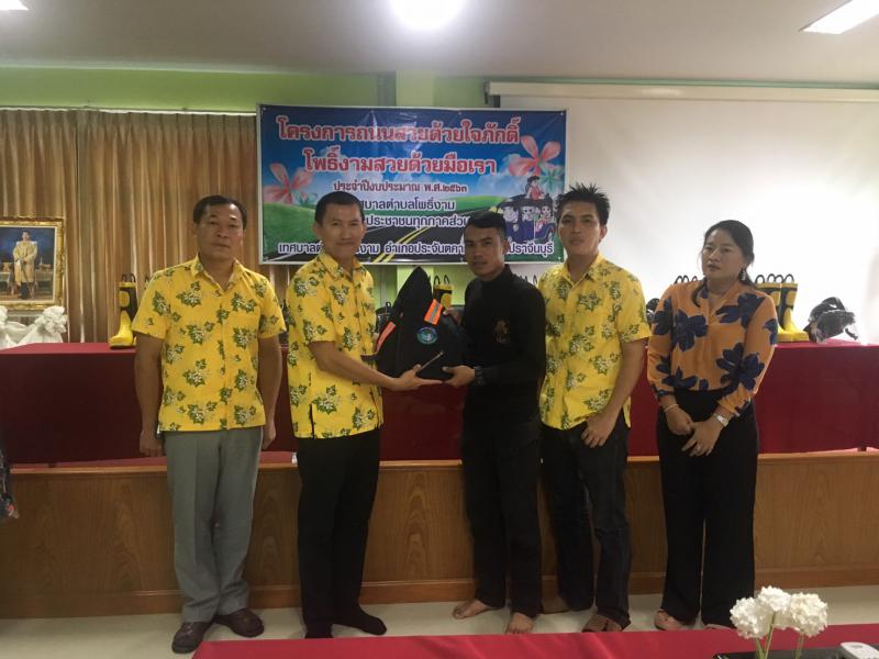 วันที่ ๒ ตุลาคม ๒๕๖๒ นายบันเทิง ปัญญาดี นายกเทศมนตรีตำบลโพธิ์งาม มอบหมายให้พันจ่าเอก เรืองชัย รุ่งศิริ ปลัดเทศบาลตำบลโพธิ์งาม เป็นประธานมอบชุดปฏิบัติงานให้แก่พนักงาน เจ้าหน้าที่ป้องกันและบรรเทาสาธารณภัย เทศบาลตำบลโพธิ์งาม เพื่อเป็นการสร้างขวัญและกำลังใจให้แก่ผู้ปฏิบัติงานด้านงานป้องกันและบรรเทาสาธารณภัย