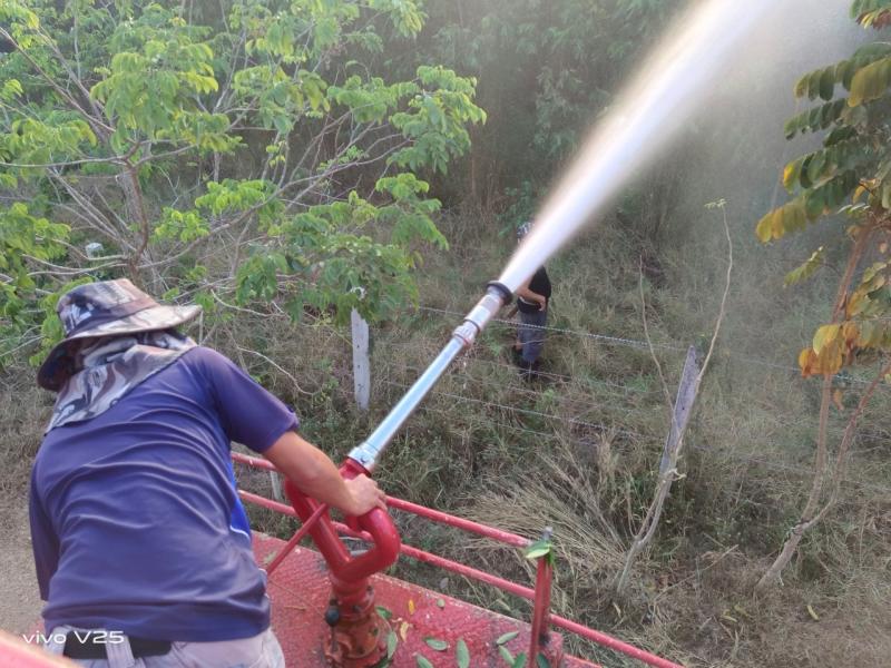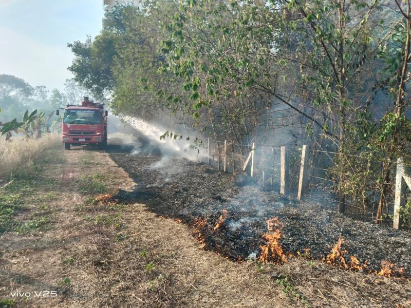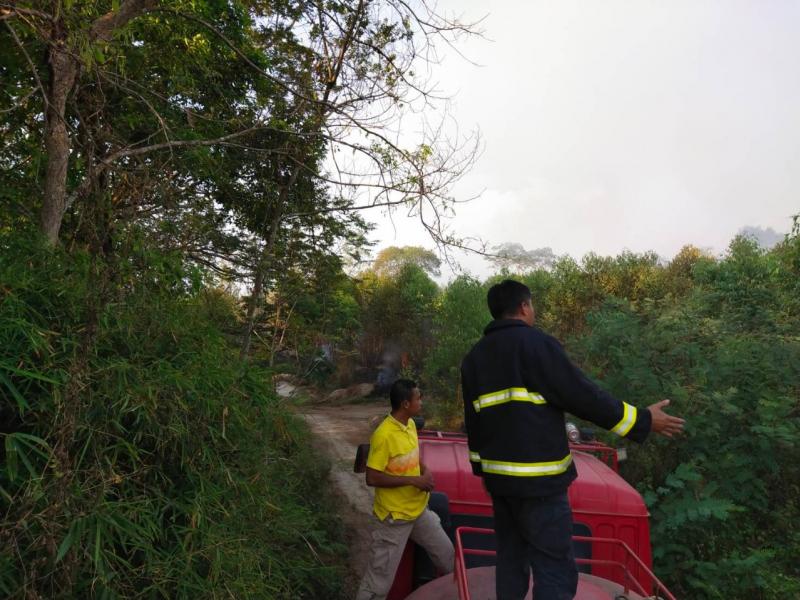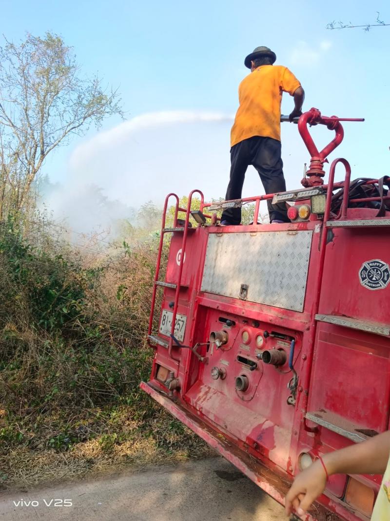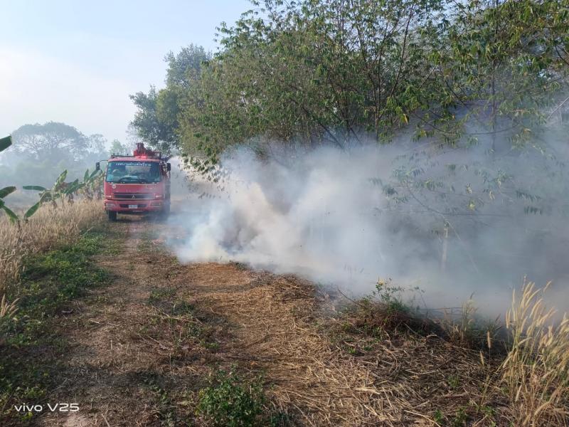 เหตุไฟไหม้หญ้าแห้งลุกลามเข้าป่าไม้ยูคา บริเวณซอยโคกกล่อง พื้นที่หมู่ ๑๙ บ้านม่วงใหม่ ตำบลโพธิ์งาม