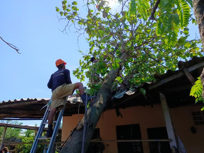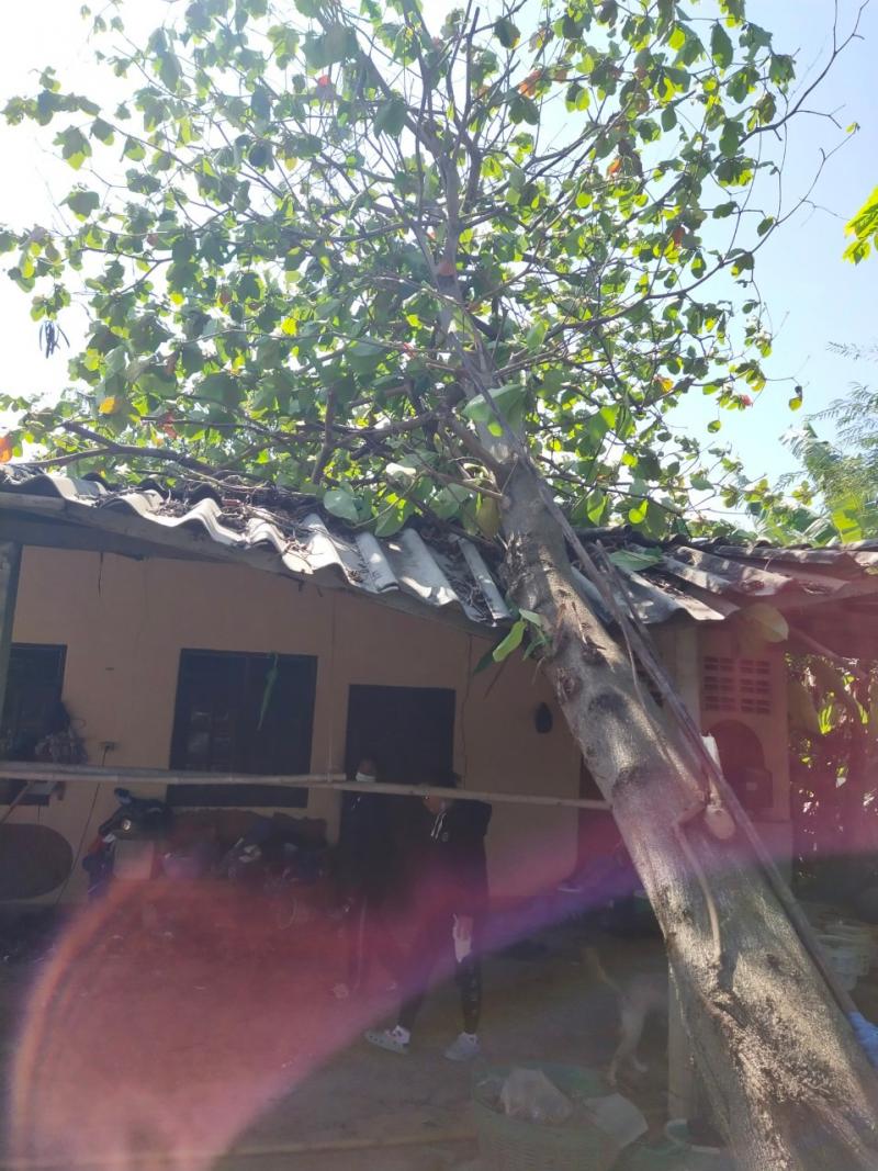 เหตุวาตภัย ต้นไม้หักทับหลังคาบ้านเรือนประชาชน หมู่ ๑๘ บ้านไทรงาม ตำบลโพธิ์งาม