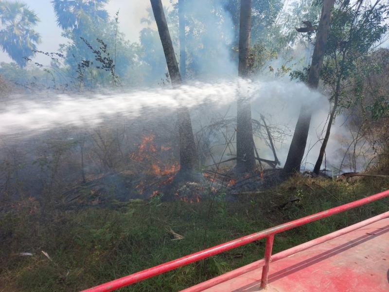 เหตุไฟไหม้ พื้นที่หมู่ 12 บริเวณจุดเดิมที่ได้ทำการดับไฟไปแล้ว เกิดการประทุขึ้นมาอีก