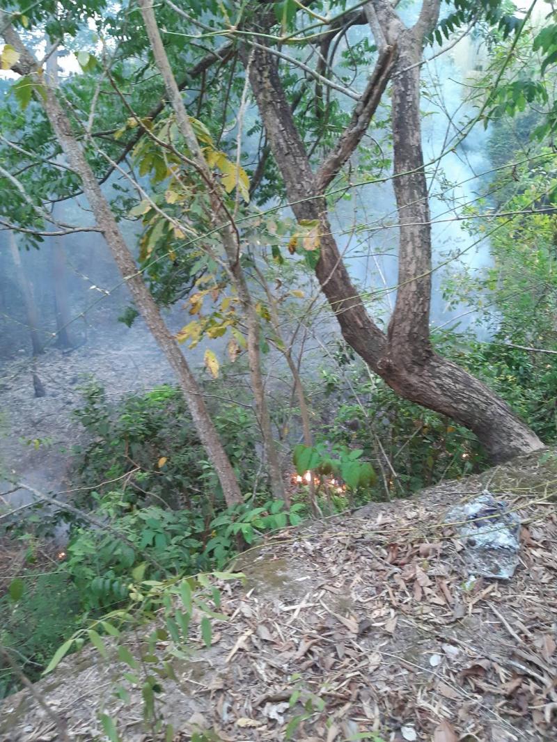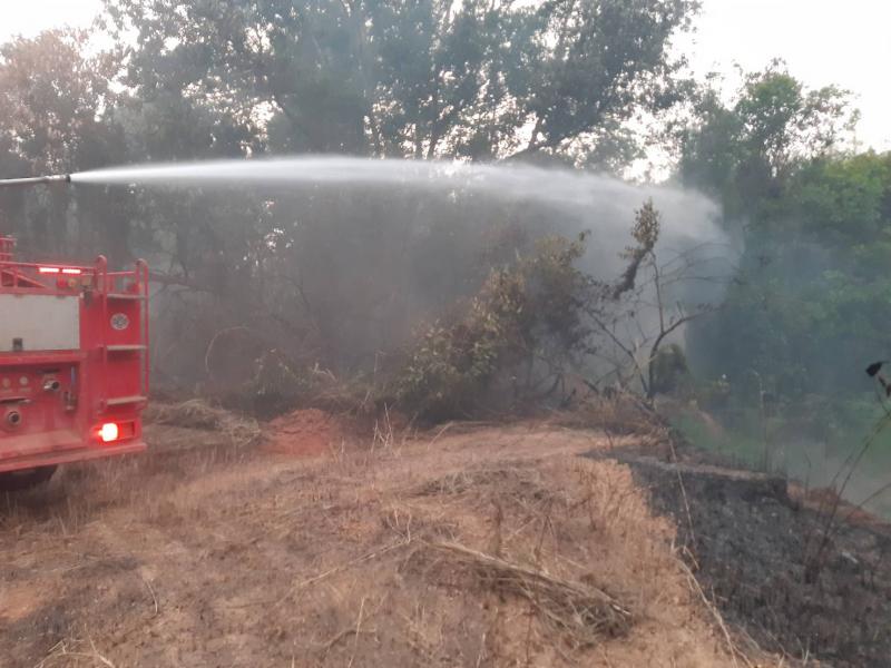 เหตุไฟไหม้ป่าหญ้าแห้งข้างทาง บริเวณบ้านเขานันทา พื้นที่หมู่ ๑๖ บ้านทุ่งยาว ตำบลโพธิ์งาม