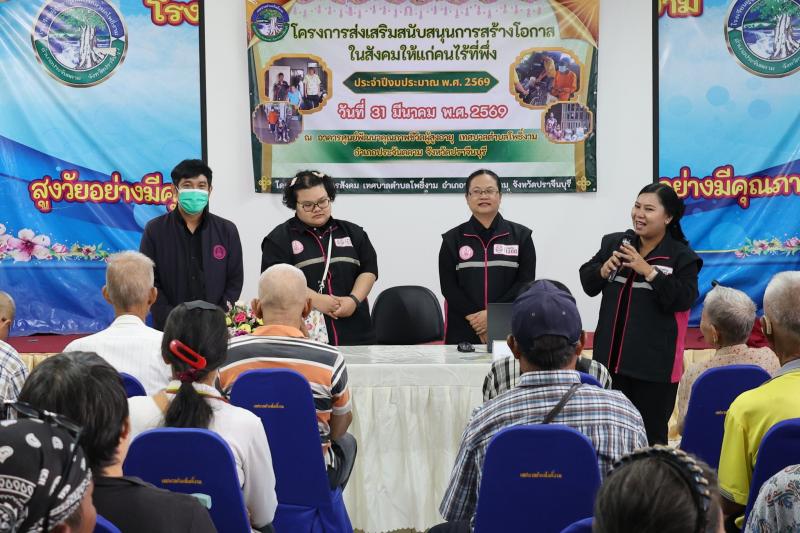 description วันที่ 31 มีนาคม 2569 เวลา 09.00 น. ณ อาคารศูนย์พัฒนาคุณภาพชีวิตผู้อายุเทศบาลตำบลโพธิ์งาม จ่าสิบเอก สุริยา รัตน์วิเศษฤทธิ์ หัวหน้าสำนักปลัด รักษาราชการแทนปลัดเทศบาล ปฏิบัติหน้าที่นายกเทศมนตรีตำบลโพธิ์งาม เป็นประธานเปิดโครงการฯ โดยผู้อำนวยการกองสวัสดิการสังคม เป็นผู้กล่าวรายงานต่อประธานในพิธี พร้อมด้วยหัวหน้าส่วนราชการ พนักงานเทศบาลฯ เข้าร่วมโครงการฯ ในครั้งนี้ด้วย และในโครงการนี้ฯได้รับเกียรติจากศูนย์คุ้มครองและเสริมสร้างคุณภาพชีวิตจังหวัดปราจีนบุรี เป็นวิทยากรให้ความรู้ ด้วย วัตถุประสงค์ : เพื่อให้ครอบครัวผู้มีรายได้น้อย ผู้ประสบปัญหาทางสังคมด้านต่างๆ และคนไร้ที่พึ่งในตำบลโพธิ์งาม สามารถเข้าถึงการจัดสวัสดิการสังคมอย่างเหมาะสม อีกทั้งเป็นการสร้างจิตสำนึกในจึตใจของคนในชุมชนให้เห็นคุณค่าของคนไร้ที่พึ่ง สามารถที่จะใช้ชีวิตในสังคมได้อย่างมีความสุข person admin