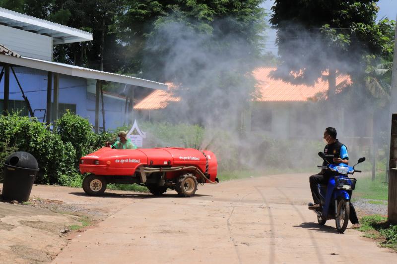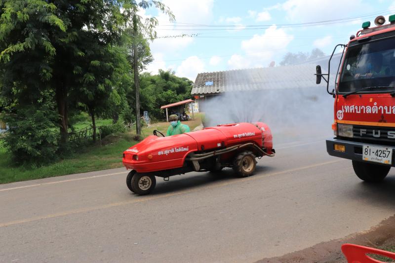เทศบาลตำบลโพธิ์งาม ฉีดพ่นยาฆ่าเชื้อให้กับพื้นที่ที่คาดว่าจะมีความเสี่ยงเพื่อป้องกันการแพร่ระบาดของโรคติดเชื้อไวรัสโคโรนา ๒๐๑๙ (โควิด-๑๙)
