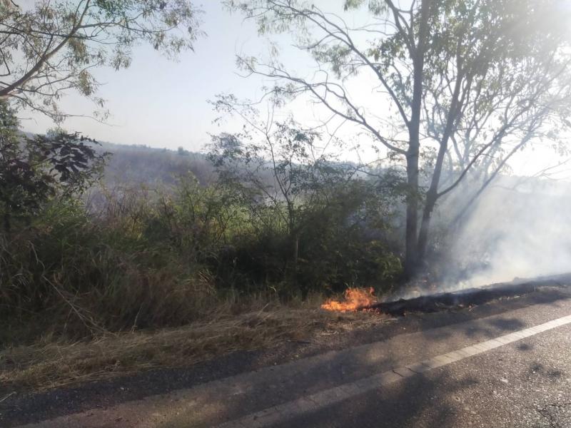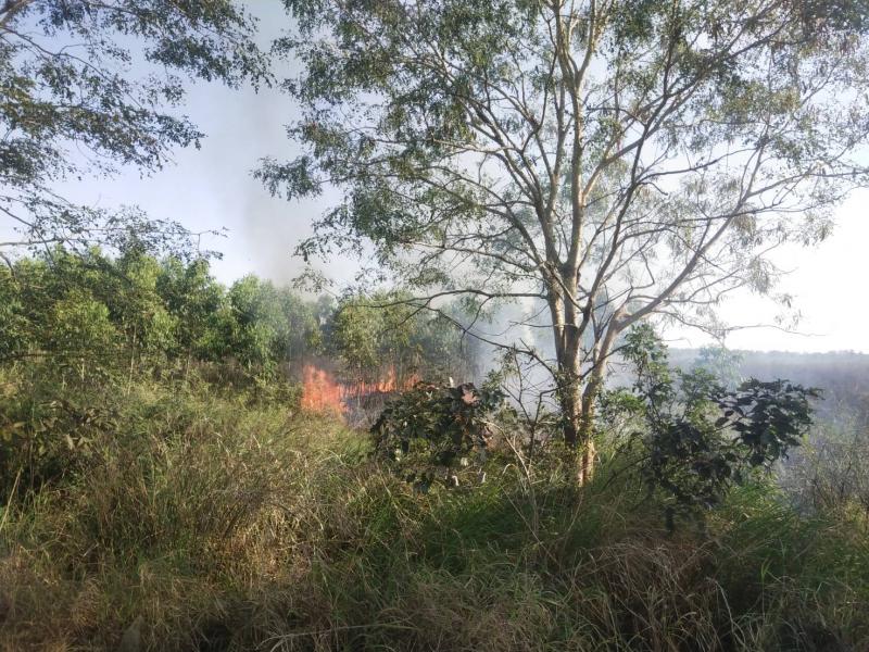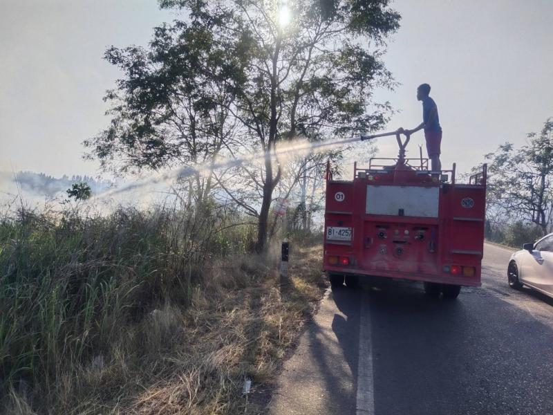 เหตุเพลิงไหม้หญ้าแห้งสองข้างทางฝั่งขาเข้าเมืองปราจีนบุรี เส้นทางแยกห้วยขื่อ-โคกมะกอก บริเวณพื้นที่หมู่ ๑๘ ตำบลโพธิ์งาม