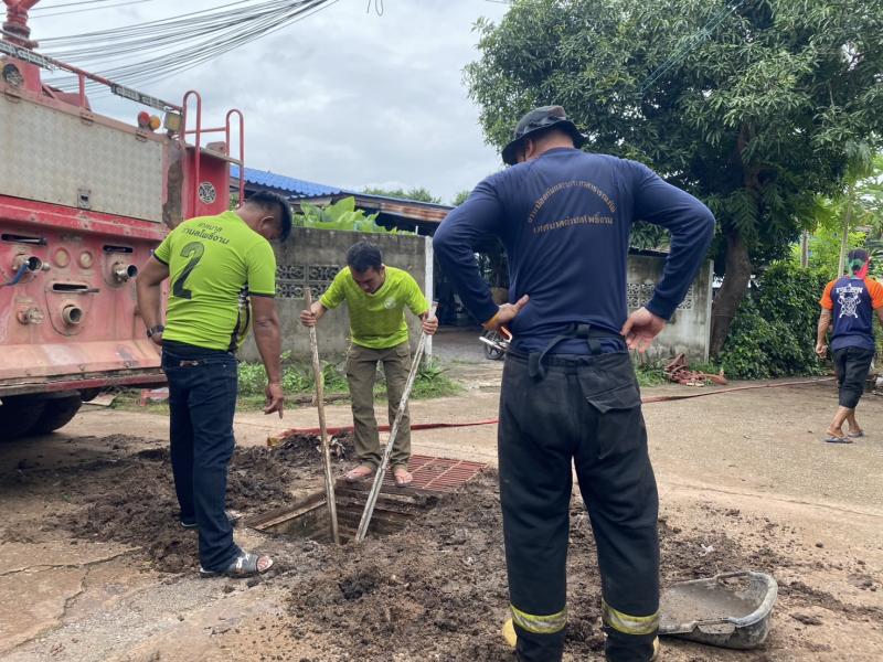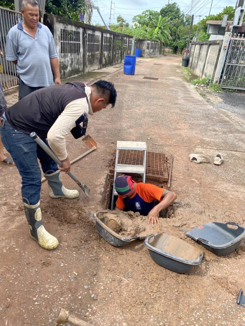 รายละเอียด : วันที่ 9 กรกฎาคม 2568 งานป้องกันและบรรเทาสาธารณภัย เทศบาลตำบลโพธิ์งาม ได้รับแจ้งจากสมาชิกสภา เขต 2 และผู้ใหญ่บ้าน หมู่ที่ 2 มีน้ำท่วมขัง น้ำไม่ไหลลงท่อระบายน้ำ แต่ไหลเข้าบ้านเรือนของประชาชน จึงแจ้งให้เจ้าหน้าที่งานป้องกันฯได้ออกตรวจสอบและดำเนินการให้ความช่วยเหลือ โดยเจ้าหน้าที่งานป้องกันฯ ได้ตรวจสอบแล้ว สาเหตุเกิดจากมีดินอยู่ในท่อระบายน้ำจึงทำให้อุดตันไม่สามารถระบายน้ำได้ เมื่อเกิดฝนตกหนักทำให้น้ำท่วมขัง เจ้าหน้าที่งานป้องกันฯ จึงดำเนินการลอกท่อ ขุดดินออก เพื่อให้น้ำสามารถระบายได้