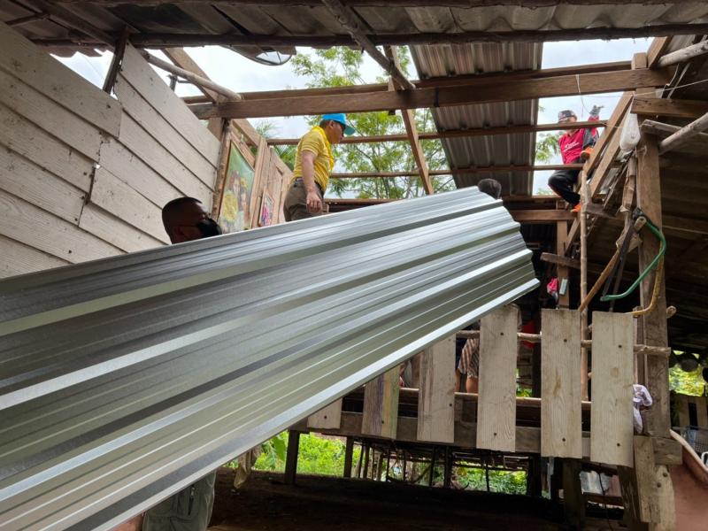 การซ่อมแซมเปลี่ยนหลังคาบ้านให้แก่ครอบครัวของเด็กหญิงเอริยา ฤทธิ์กลาง หมู่ ๑๓ บ้านคลองแก้มซ้ำ ตำบลโพธิ์งาม
