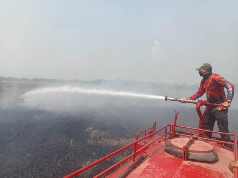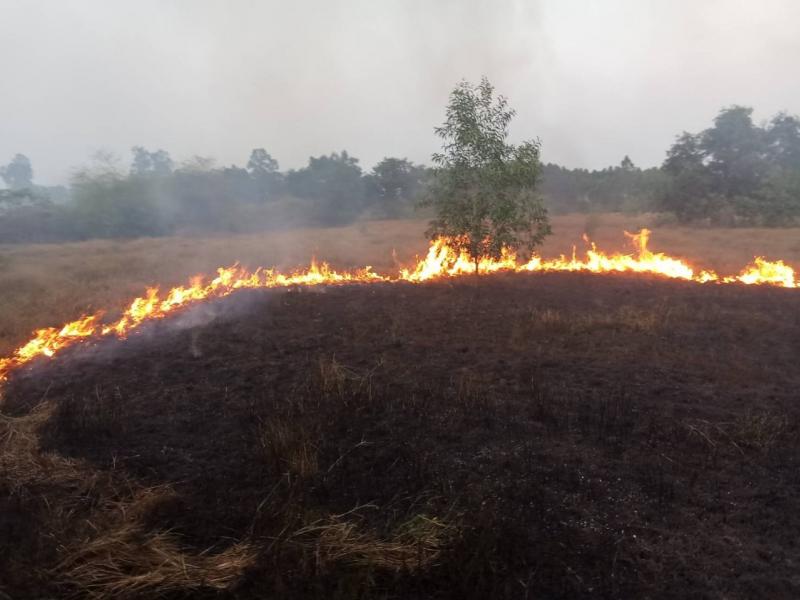 เหตุไฟไหม้หญ้าแห้งท้ายหมู่บ้านไทรงาม ลุกลามเป็นบริกว้างจนถึงถนน ๓๓ ใหม่ช่วงหมู่ที่ ๑๘ ตำบลโพธิ์งาม