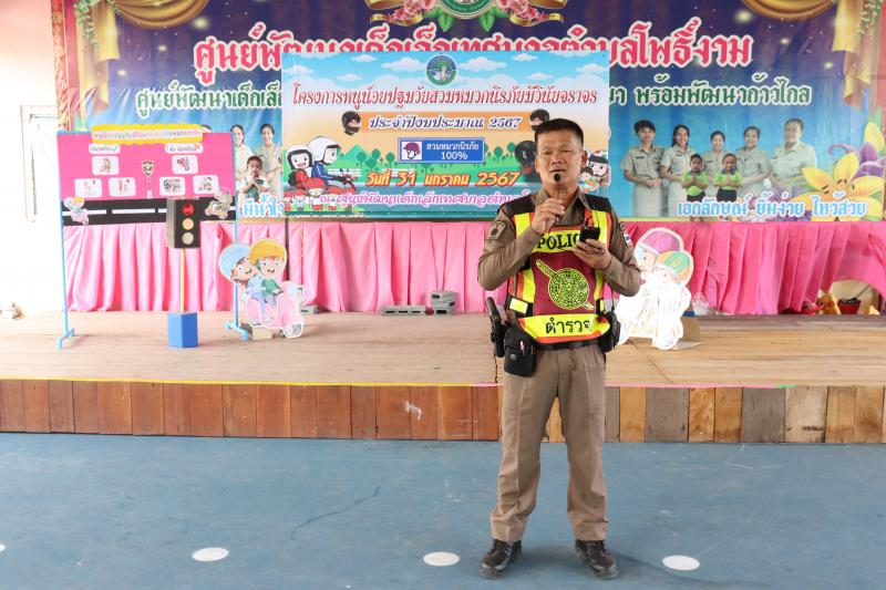 รายละเอียด : วันที่ 31 มกราคม 2567 เวลา 09.00 น. ศูนย์พัฒนาเด็กเล็กเทศบาลตำบลโพธิ์งาม กองการศึกษา เทศบาลตำบลโพธิ์งาม จัดโครงการหนูน้อยปฐมวัยสวมหมวกนิรภัยมีวินัยจราจร ประจำปีงบประมาณ พ.ศ.2567 โดย ร้อยตำรวจโท สมพร เพียรราด รองสารวัตรป้องกันและปราบปราม สภานีตำรวจภูธรประจันตคาม ให้เกียรติเป็นวิทยากรบรรยาย