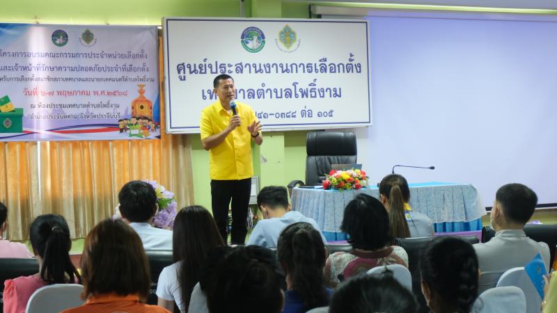 รายละเอียด : วันที่ 6 พฤษภาคม 2567 เวลา 09.00 น. เทศบาลตำบลโพธิ์งาม จัดโครงการอบรมคณะกรรมการประจำหน่วยเลือกตั้งและเจ้าหน้าที่รักษาความปลอดภัยประจำที่เลือกตั้ง สำหรับการเลือกตั้งสมาชิกสภาเทศบาลและนายกเทศมนตรีตำบลโพธิ์งาม ณ ห้องประชุมเทศบาลตำบลโพธิ์งาม โดยพันจ่าเอก เรืองชัย รุ่งศิริ ปลัดเทศบาล ปฏิบัติหน้าที่ นายกเทศมนตรีตำบลโพธิ์งาม กล่าวรายงานวัตถุประสงค์ต่อ นายกองตรี ปพนศักดิ์ ขันติชัยมงคล นายอำเภอประจันตคาม ซึ่งให้เกียรติเป็นประธานเปิดโครงการฯ ในวันนี้