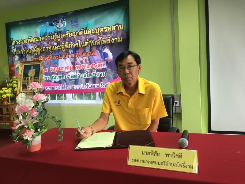 วันที่ ๒๗ พฤษภาคม ๒๕๖๒ เทศบาลตำบลโพธิ์งาม จัดโครงการพัฒนาความรู้สู่เครือญาติและบุตรหลานในการดูแลผู้สูงอายุและผู้พิการในตำบลโพธิ์งาม ประจำปีงบประมาณ พ.ศ.๒๕๖๒ ณ ห้องประชุมเทศบาลตำบลโพธิ์งาม โดยนายพิสัย พานิชดี รองนายกเทศมนตรีตำบลโพธิ์งาม ได้รับมอบหมายจากนายกเทศมนตรีตำบลโพธิ์งาม เป็นประธานเปิดโครงการ