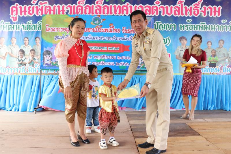 กิจกรรมในงานมีการประกวดหนูน้อยนพมาศ และประกาศผลรางวัลการแข่งขันระบายสี และคัดลายมือ ของเด็กศูนย์พัฒนาเด็กเล็กเทศบาลตำบลโพธิ์งาม