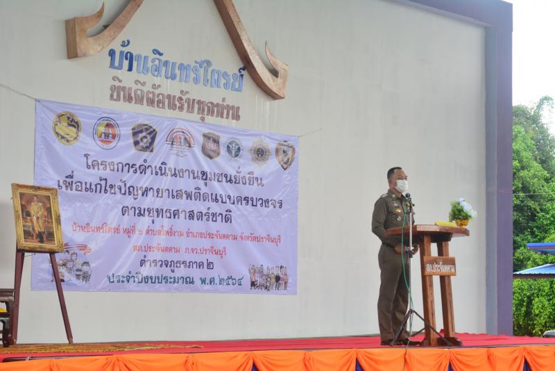 รายละเอียด : วันที่ ๑๐ มิถุนายน ๒๕๖๔ นายบันเทิง ปัญญาดี นายกเทศมนตรีตำบลโพธิ์งาม มอบหมายให้นายพิสัย พานิชดี รองนายกเทศมนตรีตำบลโพธิ์งาม พร้อมด้วยประธานสภาเทศบาล สมาชิกสภาเทศบาล พนักงานเทศบาล เข้าร่วมโครงการการดำเนินการชุมชนยั่งยืนเพื่อแก้ไขปัญหายาเสพติดแบบครบวงจรตามยุทธศาสตร์ชาติ ณ บ้านอินไตรย์ หมู่ ๖ ตำบลโพธิ์งาม อำเภอประจันตคาม จังหวัดปราจีนบุรี โดยมี ผบก.ภ.จว.ปราจีนบุรี เป็นประธานในพิธี พร้อมด้วยนายอำเภอประจันตคาม นำกำนัน ผู้ใหญ่บ้าน เข้าร่วมในพิธีด้วย