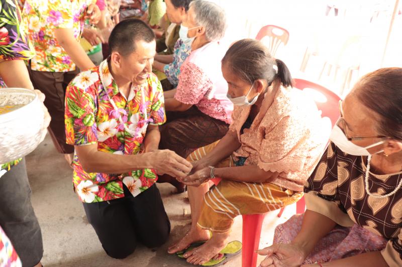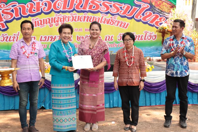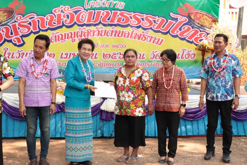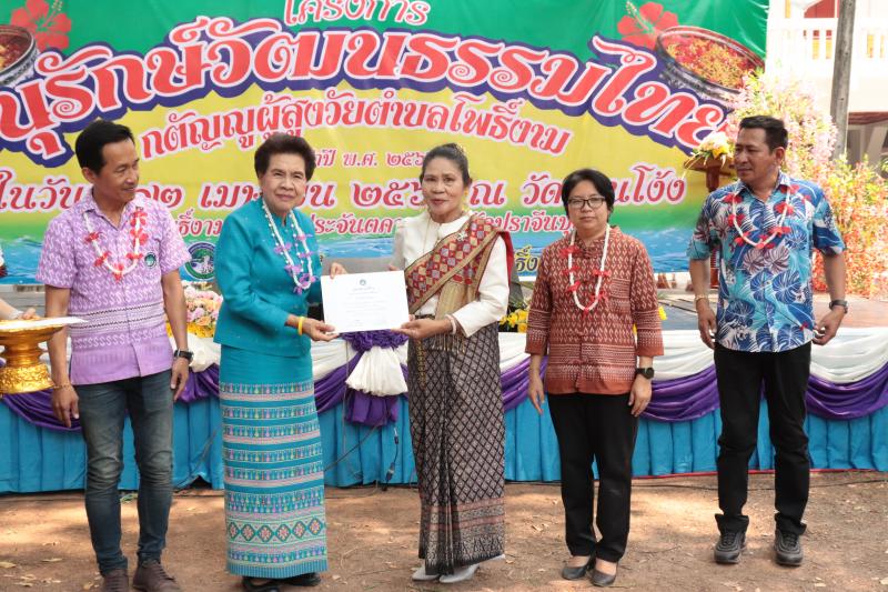 รายละเอียด : วันที่ ๑๒ เมษายน ๒๕๖๖ นายบันเทิง ปัญญาดี นายกเทศมนตรีตำบลโพธิ์งาม พร้อมด้วยคณะผู้บริหาร ประธานสภาเทศบาล สมาชิกสภาเทศบาล กำนันตำบลโพธิ์งาม ผู้ใหญ่บ้าน ผู้ช่วยฯ สารวัตรกำนัน ร่วมกิจกรรมโครงการอนุรักษ์วัฒนธรรมไทย กตัญญูผู้สูงวัย ตำบลโพธิ์งาม ประจำปีงบประมาณ พ.ศ.๒๕๖๖ ณ วัดป่าบ้านโง้ง ตำบลโพธิ์งาม อำเภอประจันตคาม จังหวัดปราจีนบุรี โดยนางบังอร วิลาวัลย์ ประธานสภาวัฒนธรรมจังหวัดปราจีนบุรี เป็นประธานเปิดโครงการฯ และนางสาวจุฑามาศ บัวเผื่อน นายอำเภอประจันตคาม ร่วมโครงการฯ ด้วย เพื่อเป็นการส่งเสริมประเพณีสืบสานอนุรักษ์วัฒนธรรมไทย ประธานนำรดน้ำขอพรผู้สูงอายุ ด้วย
